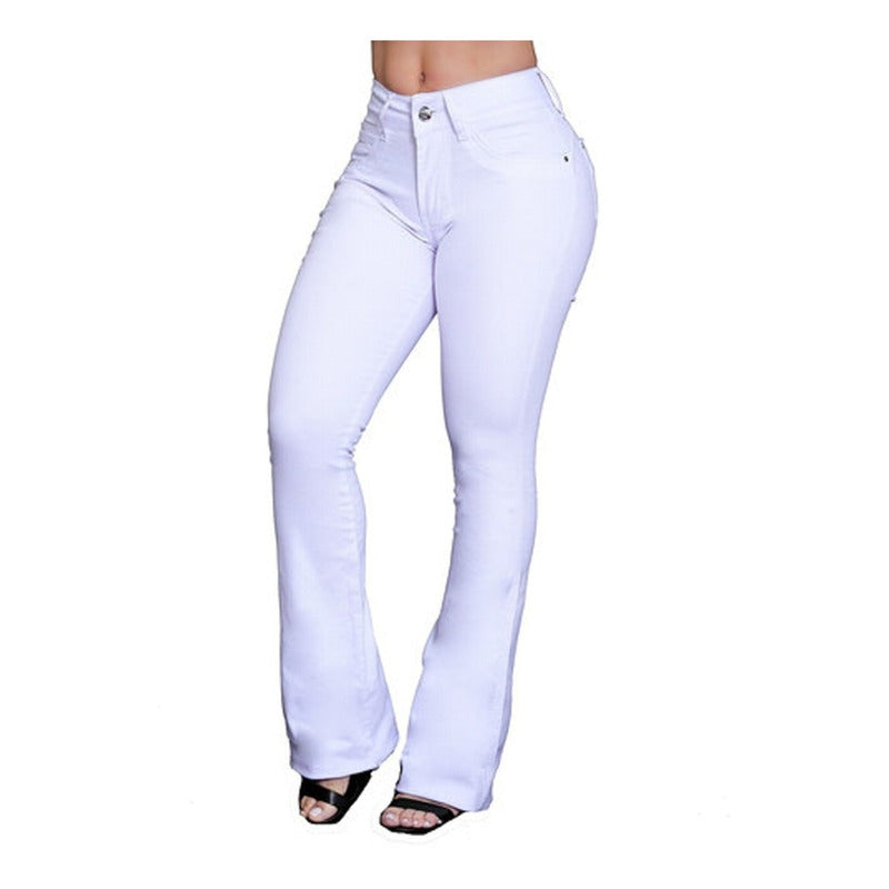 Calça barra alongada feminina fabricada em tecido macio jeans lycra com bojo removível